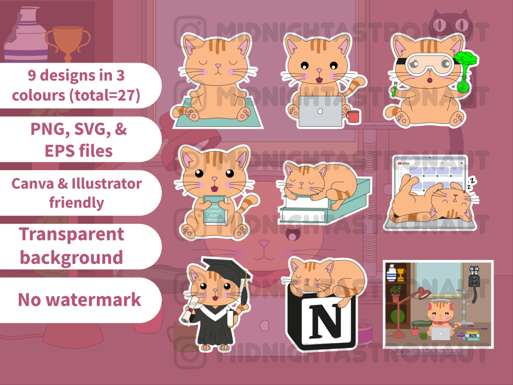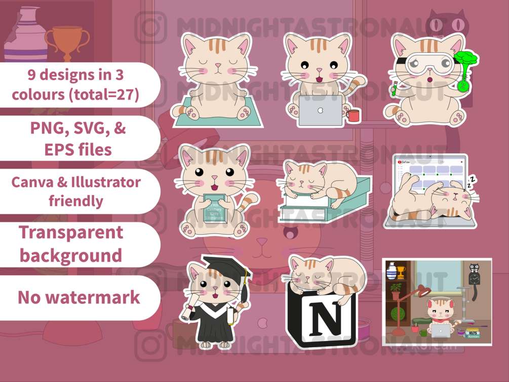 ❤️ 27 individual images with transparent background (9 versions in the 3 different cat colours)
