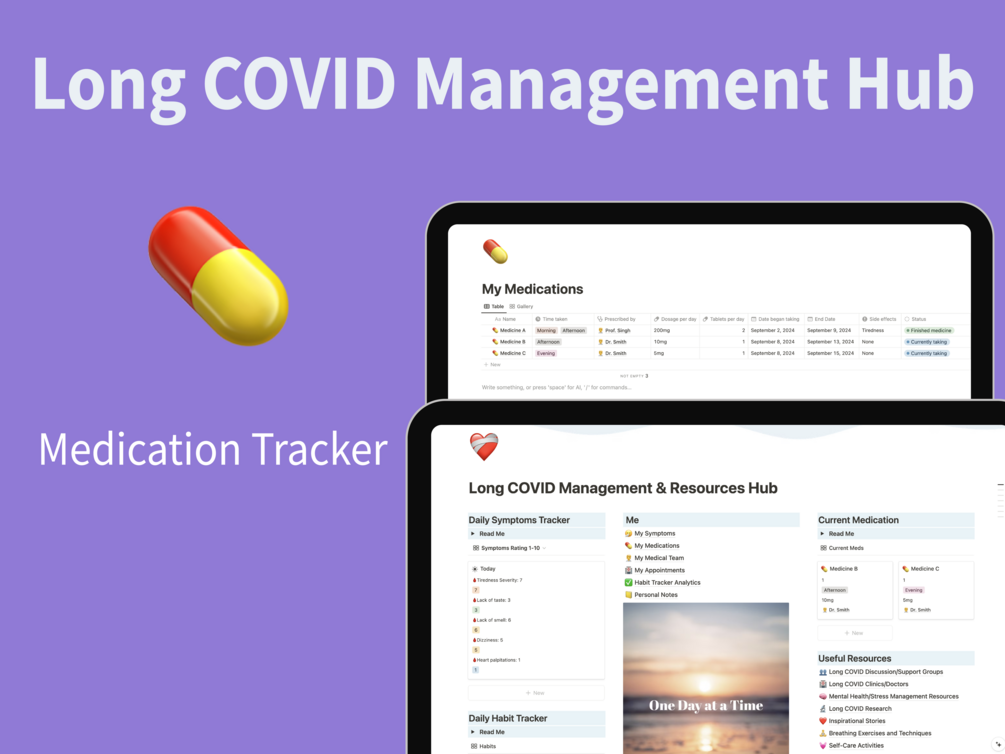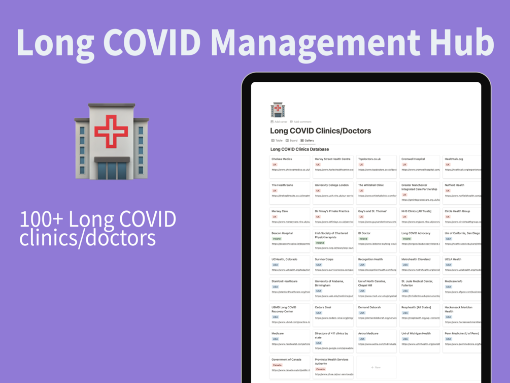 Introducing the Long COVID Management and Resources Hub for Notion – an all-in-one resource designed to support individuals managing the long-term effects of COVID-19.